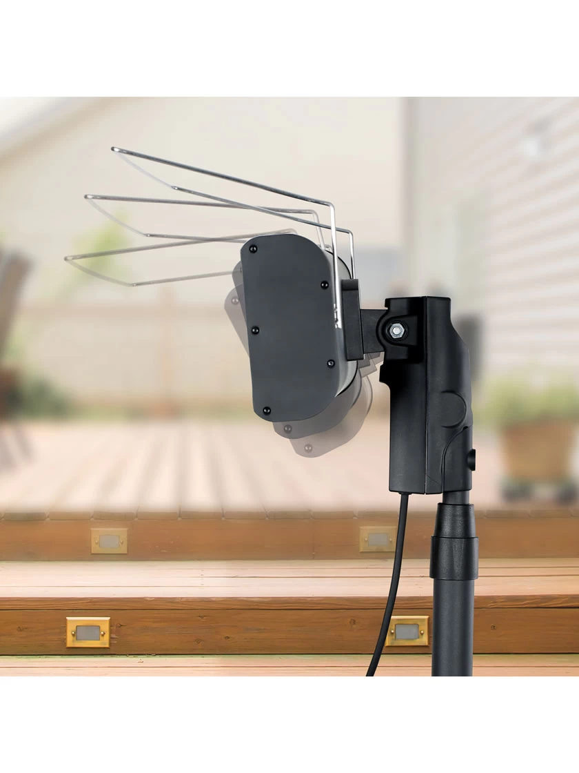 Chill out + cozy up in the great outdoors in comfort and style with the 1500 Watt Electric Infrared Heater from SUN JOE — the perfect addition to any patio, deck, or outdoor lounge space. This remote-controlled electric heater can warm up to 130 sq ft to a comfortable temperature, with a maximum heat output of 5118 BTUs, so you and your family can stay nice and warm on a chilly night. Choose the height of your heater with the telescoping pole that adjusts from 5.25 ft to 6 ft. Or adjust the angle of the heating head between 0º and 25º, to perfectly warm your space. Set the heater up on the included stand so you can take the heat where you want it; or use the included wall bracket for a permanent heating fixture.